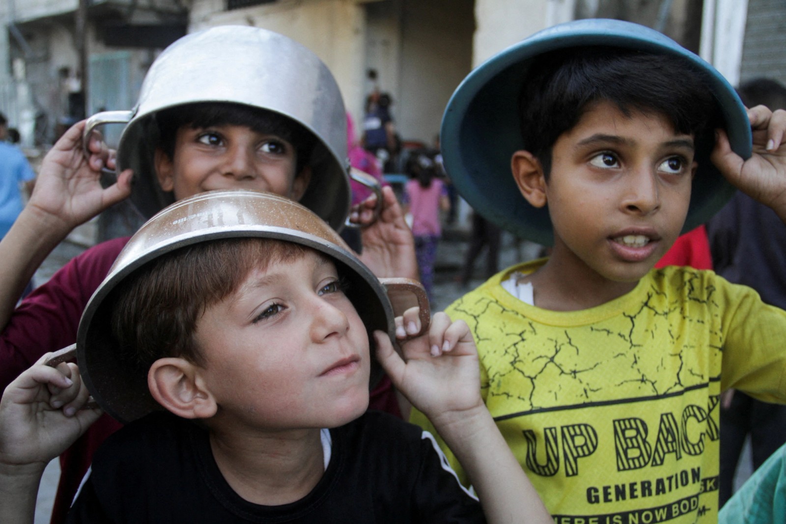 کودکان فلسطینی در صف دریافت غذا در شمال نوار غزه، ۲۴ مرداد
