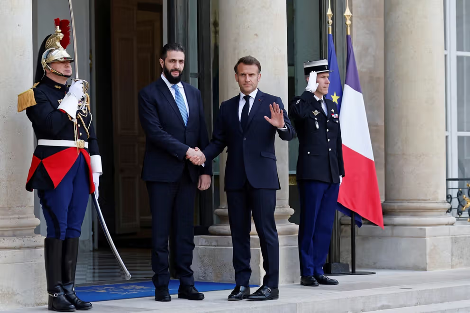 با این حال، امانوئل مکرون، رییس‌جمهوری فرانسه که در ابتدای ماه می با الشرع دیدار کرده بود، اعلام کرد از اتحادیه اروپا خواهد خواست تا به تحریم‌ها علیه سوریه پایان دهد.