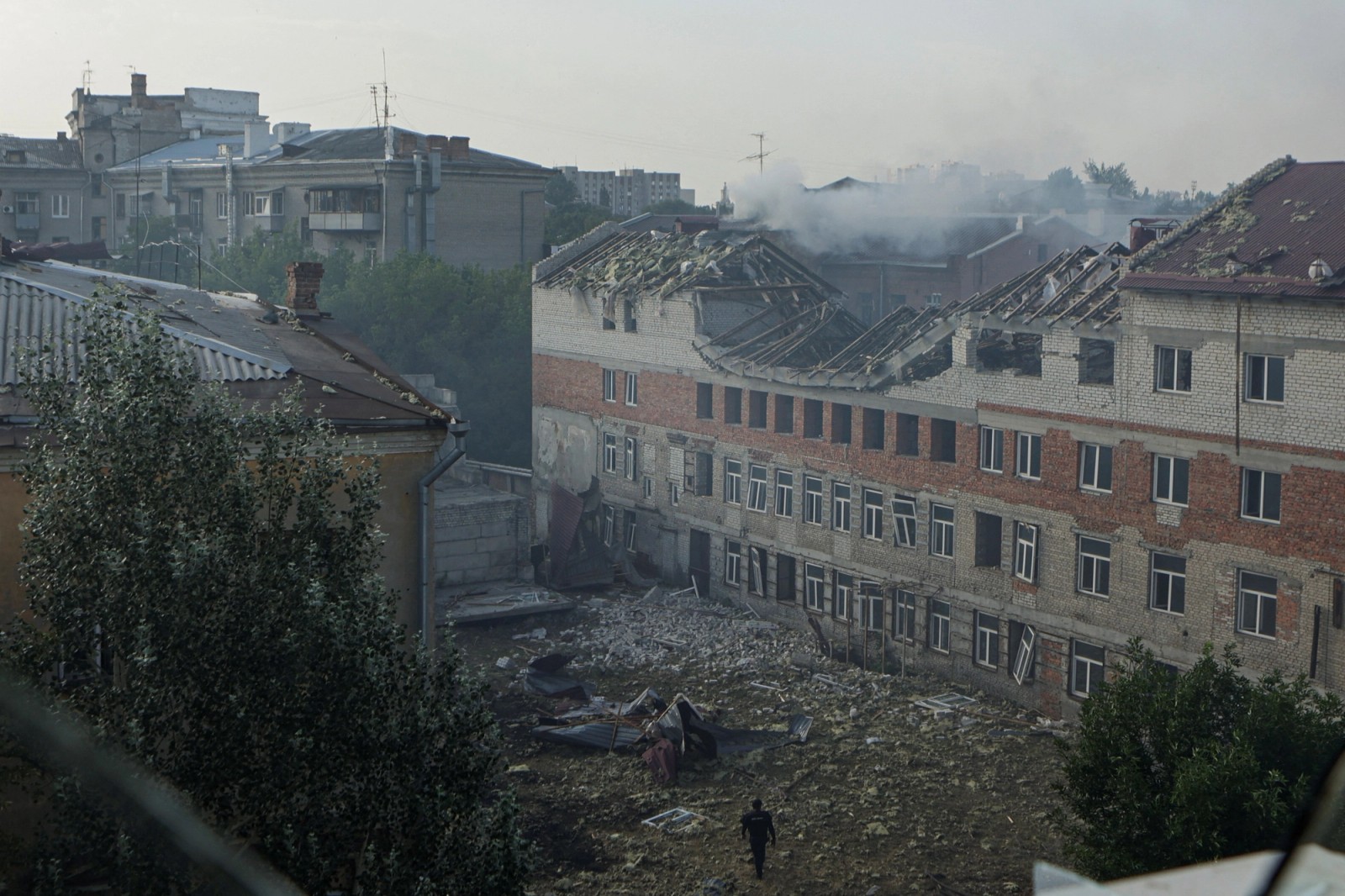 ویرانیها برجا مانده از حمله پهپادی روسیه به شهر خارکیف، ۲۰ تیر