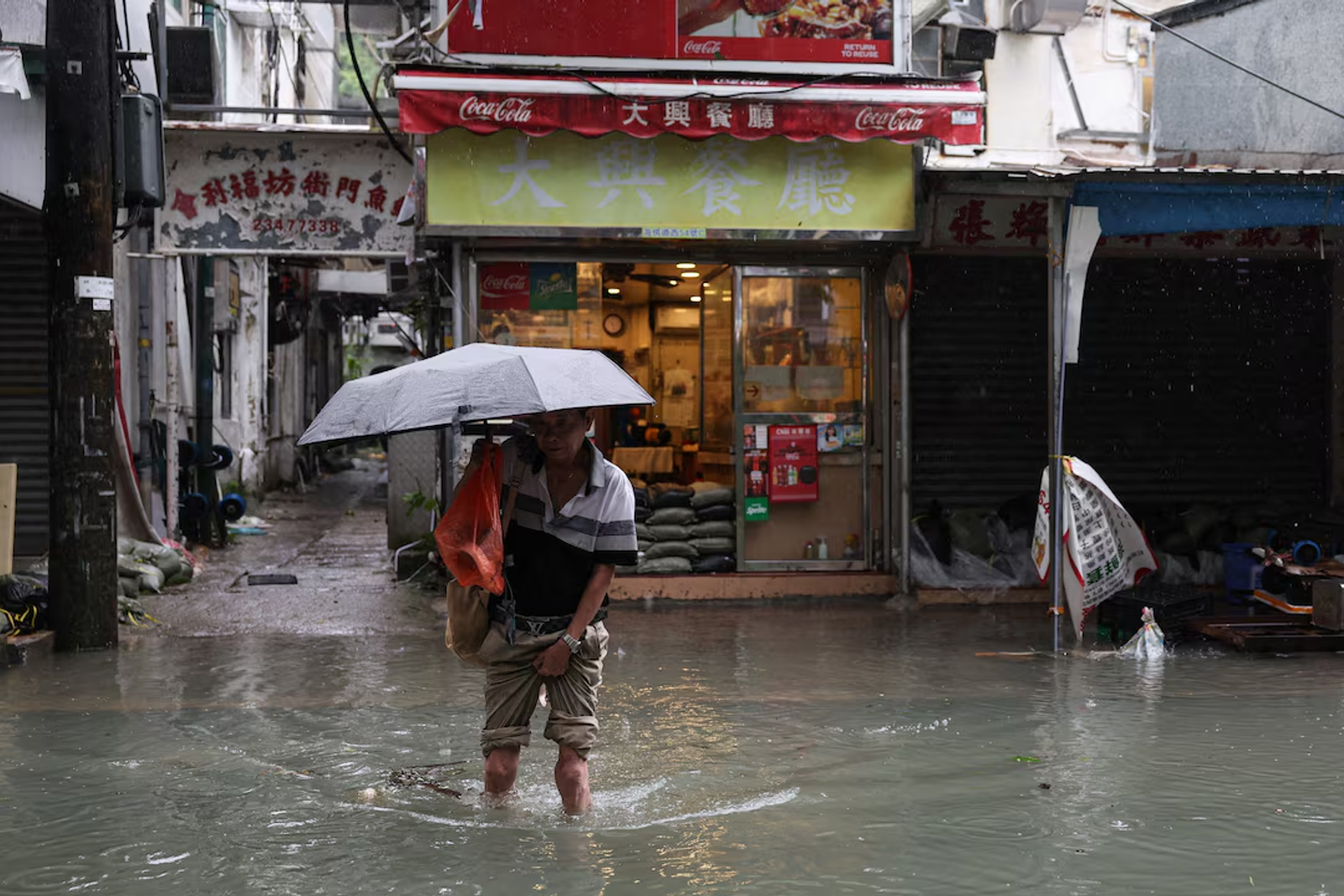 امواج بلند طوفان راگاسا به سواحل شرقی و جنوبی هنگ‌کنگ رسید و آب دریا وارد خیابان‌ها و مناطق مسکونی شد.
