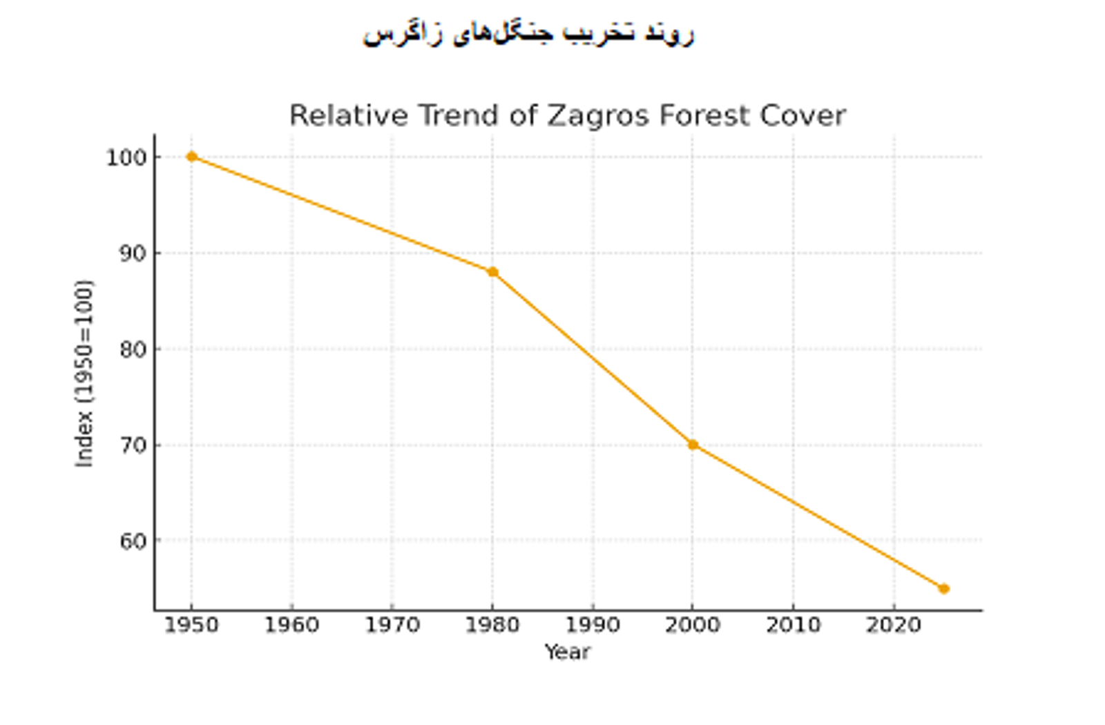 با روند فعلی نابودی جنگلهای کشور، نمیتوان آیندهای برای این عرصههای سبز متصور بود که امروز شاید در مجموع کمتر از هشت میلیون هکتار از آنها باقی مانده باشند. روند نابودی نیز با شیب تندی به پیش میرود و برای تغییر و اصلاح، فرصت اندکی باقی است (نگاه کنید به دو نمودار پایین؛ روند تخریب هیرکانی و زاگرس با استناد به آمار در دسترس).