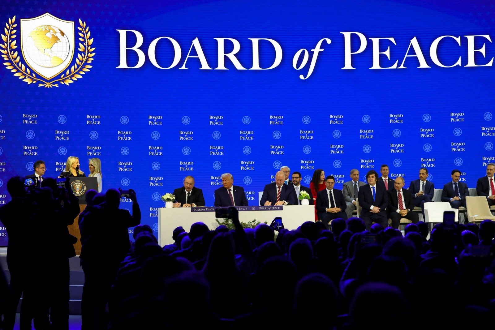 خبرگزاری رویترز نوشت همزمان با سخنرانی ترامپ، نمایندگان کشورهایی که بهعنوان «اعضای بنیانگذار» هیئت صلح معرفی شدهاند در سالن حضور داشتند، اما نمایندگان قدرتهای بزرگ جهانی، اسرائیل و تشکیلات خودگردان فلسطین غایب بودند.