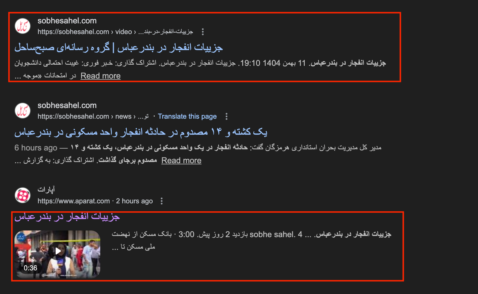 با جستجوی عبارت «جزییات_انفجار_در _بندرعباس» میتوانید نشانههای انتشار این ویدیو از سوی روزنامه صبح ساحل را در صفحه اول گوگل پیدا کنید.