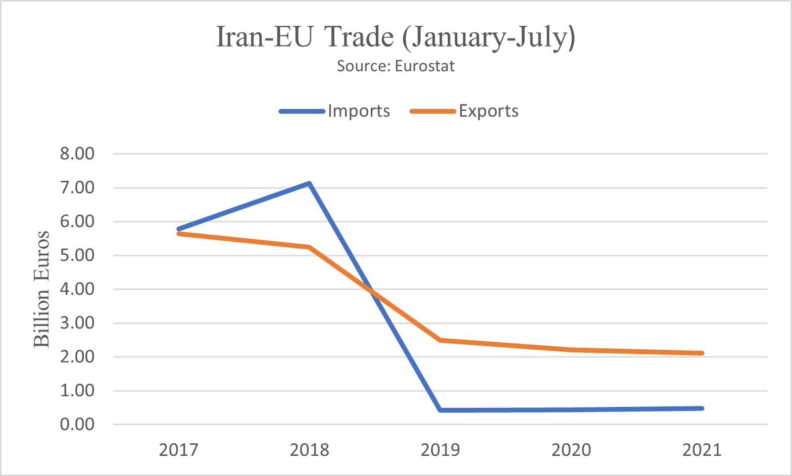 European governments opposed Trump’s unilateral sanctions and tried to convince European companies to trade with Iran. However, the private sector defied Brussels and complied with Washington’s sanctions. Despite loose enforcement of US sanctions by the Biden administration, the data for the first seven months of 2021 show no significant increase in trade between the EU countries and Iran. During this time period, EU’s imports from Iran rose to 480 million euros, slightly higher than 440 million euros during the same period last year, while its exports dropped from 2.21 billion euros to 2.11 billion.