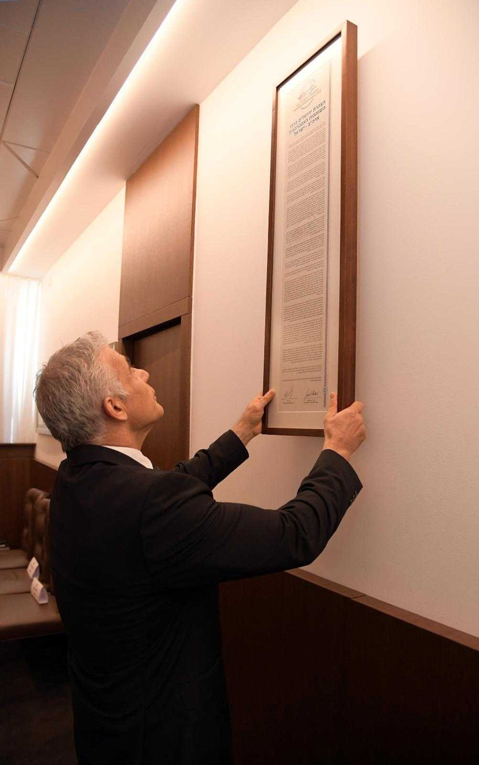 Lapid’s office also issued a photo of him hanging up the so-called Jerusalem Declaration -- signed by Lapid and Biden in which Washington committed to “use all elements of its national power” to ensure Iran never acquires a nuclear weapon -- in the cabinet meeting room in Jerusalem. Lapid said he was hanging the statement “in the place intended for historical declarations.”