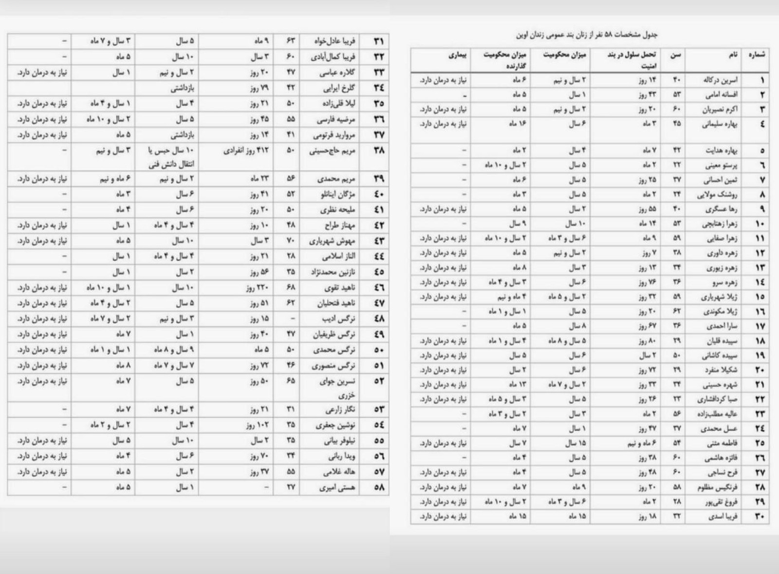 Mentioning the names of 58 out of 61 prisoners, she also shed light on the conditions that these women are being kept in, including their difficulties to access medical care and treatment.