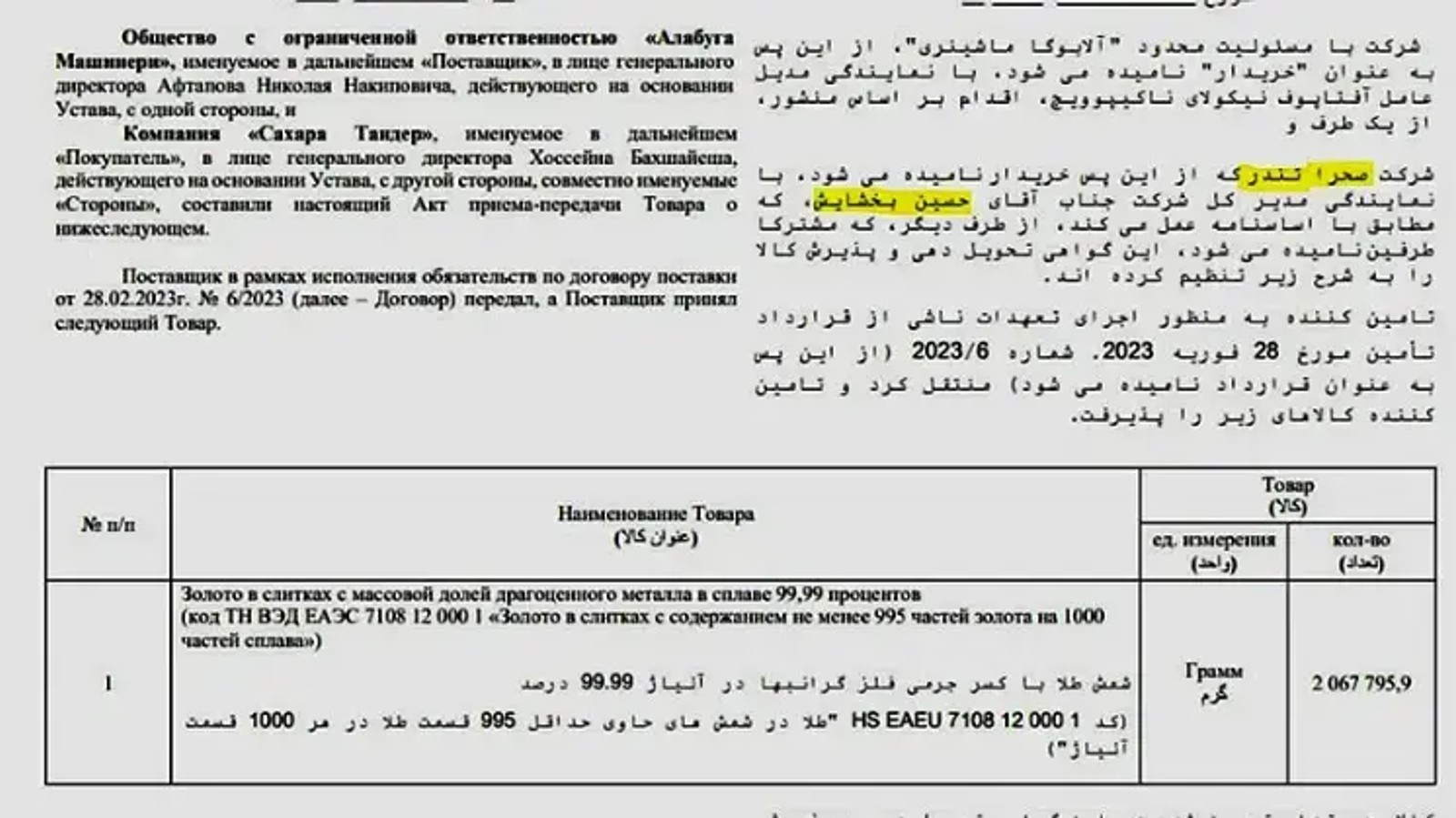 A leaked document shows that a company affiliated with the armed forces of the Islamic Republic has conducted its drone transactions with Russia using gold instead of currency.