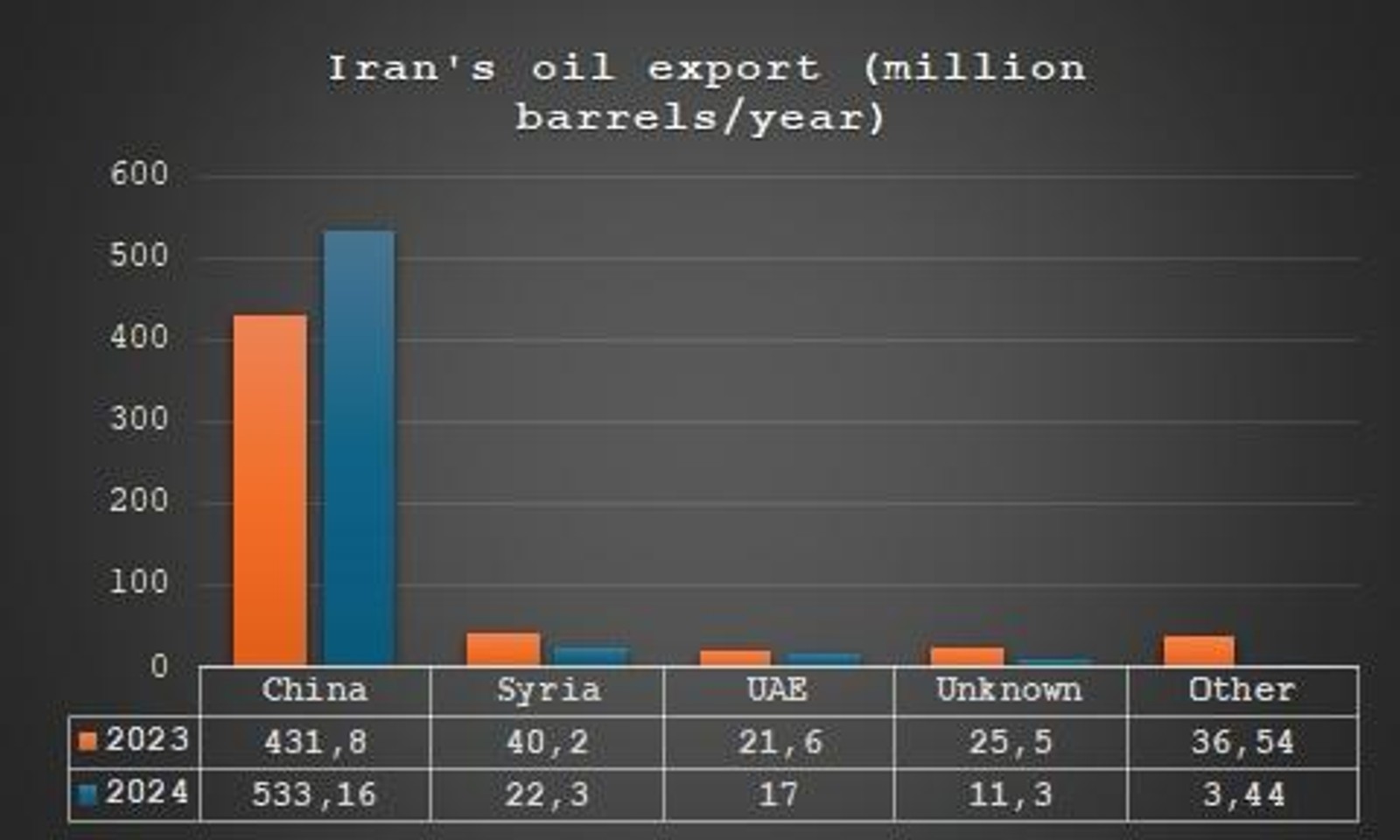 Data from oil tanker tracking firms reveal that during Joe Biden's presidency, Iran exported approximately 2 billion barrels of oil—a significant increase compared to the volumes recorded between 2019 and 2021.