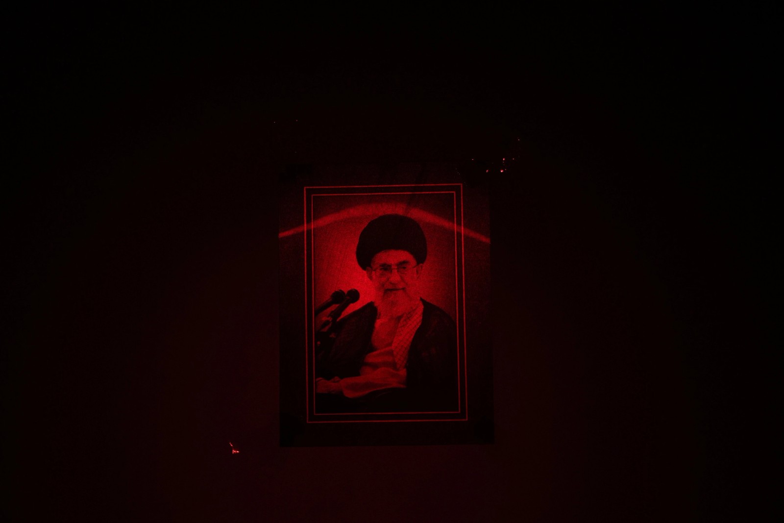 A picture of Iran's Supreme Leader Ali Khamenei hangs on a wall in the Sayyida Zaynab neighborhood, in Damascus, Syria, December 14, 2024.