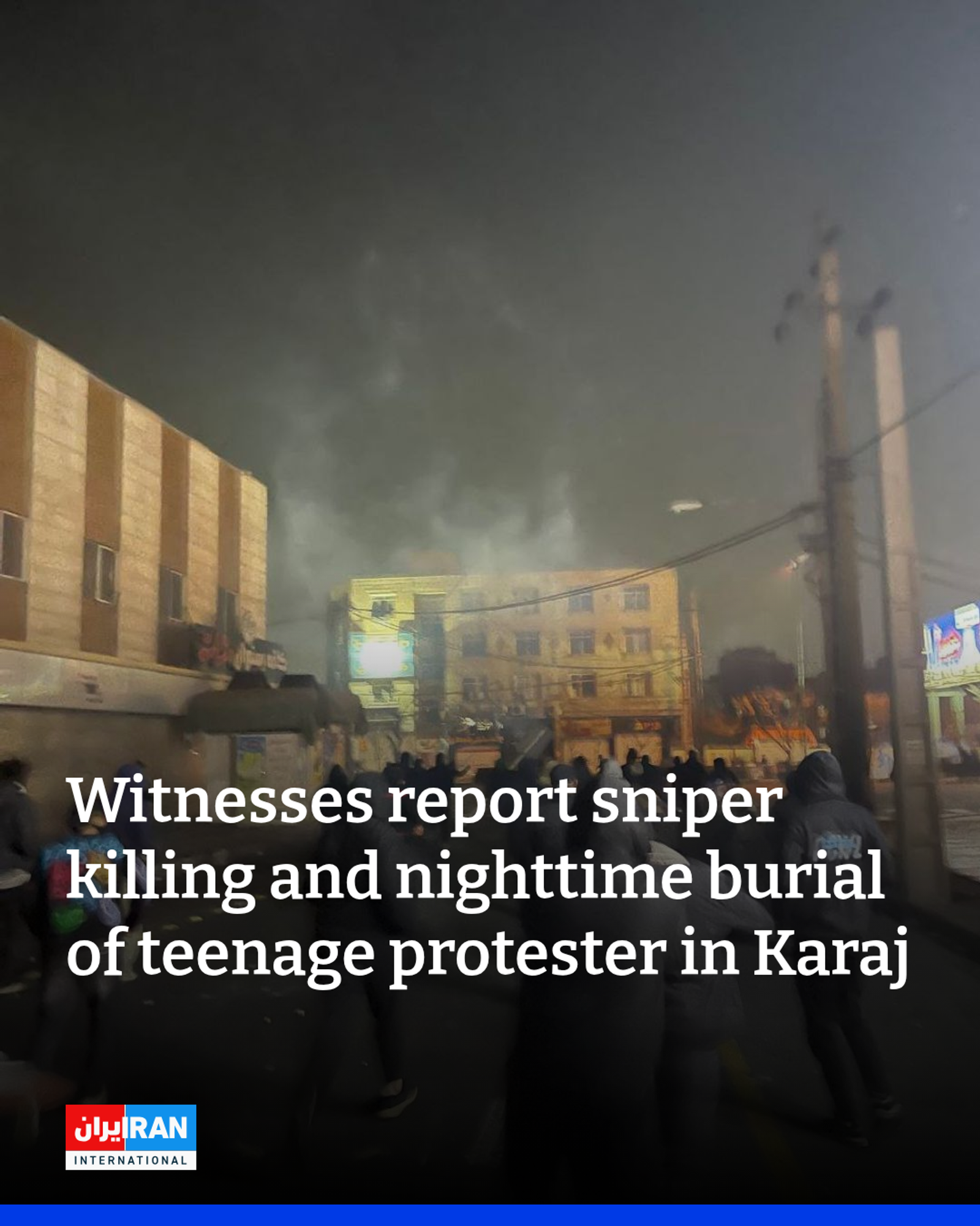 Images and messages received by Iran International indicate that protesters in Karaj were killed by sniper fire during demonstrations, followed by the nighttime burial of victims, including a 16-year-old boy identified as Reza.