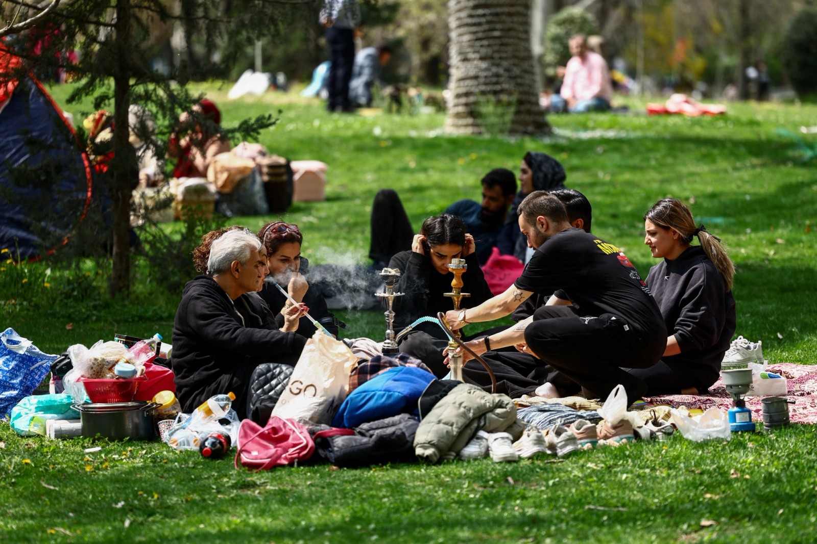 Iranian families were seen in parks in Tehran on Nature Day, a public holiday marking the end of Nowruz when people traditionally gather outdoors.