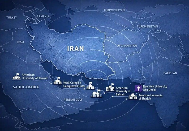 IRGC-linked Tasnim published a list of US-linked universities in Qatar, the UAE, Kuwait, Bahrain and Saudi Arabia, presenting them as potential targets.
