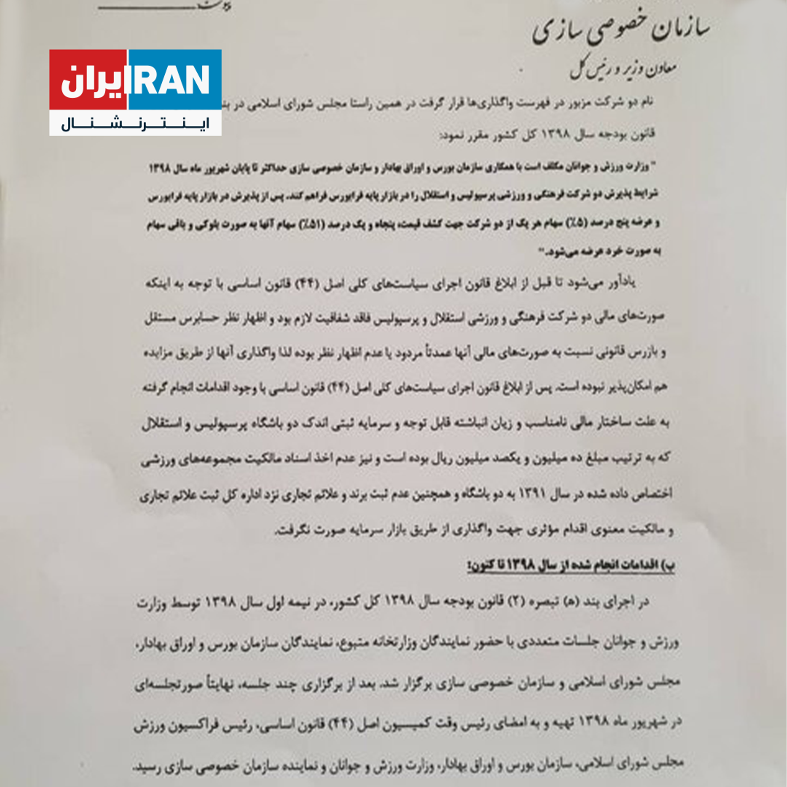 این روزها در حالی بحث حذف استقلال و پرسپولیس از لیگ قهرمانان آسیا به دلیل داشتن مالکیت مشترک مطرح است که این دوباشگاه براساس اسنادی که در ادامه میبینید، از فروردین ماه آماده واگذاری بودهاند ولی این اتفاق رخ نداده است!