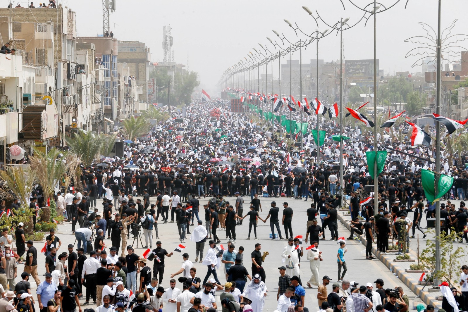جمعیتی عظیم از هواداران مقتدی صدر و جریان سیاسی صدر، امروز و در جریان برگزاری نماز جمعه، خیابان‌های بغداد را تسخیر کردند. شماری از این هواداران در حالی کفن‌پوش به خیابان آمدند که نماینده دفتر صدر در امور استان‌های عراق، شمار آنان را یک میلیون نفر اعلام کرد.