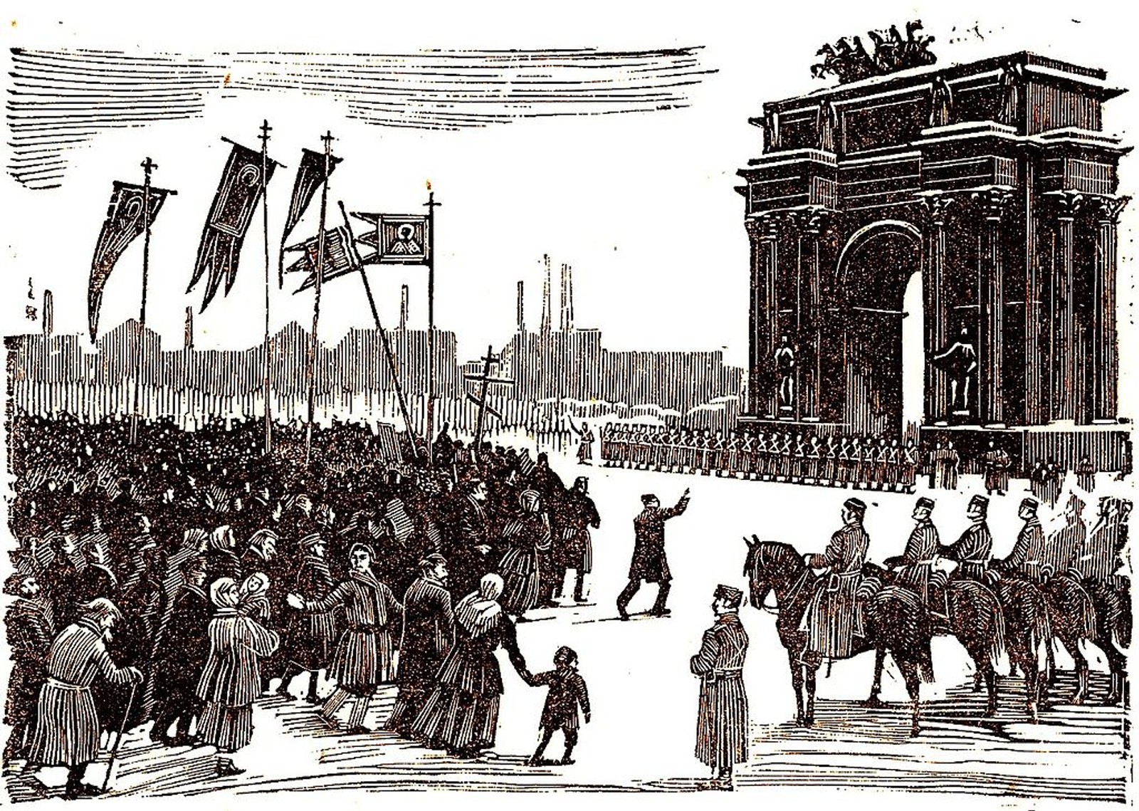 در ژانویه ۱۹۰۵، کارگران در یک راهپیمایی، با دست خالی از سلاح، راهی «کاخ زمستانی» واقع در شهر پتروگراد، سنپترزبورگ کنونی شدند تا یک دادخواست برای بهتر شدن حقوق کارگران و بهبود حقوق مدنی تحویل دهند.