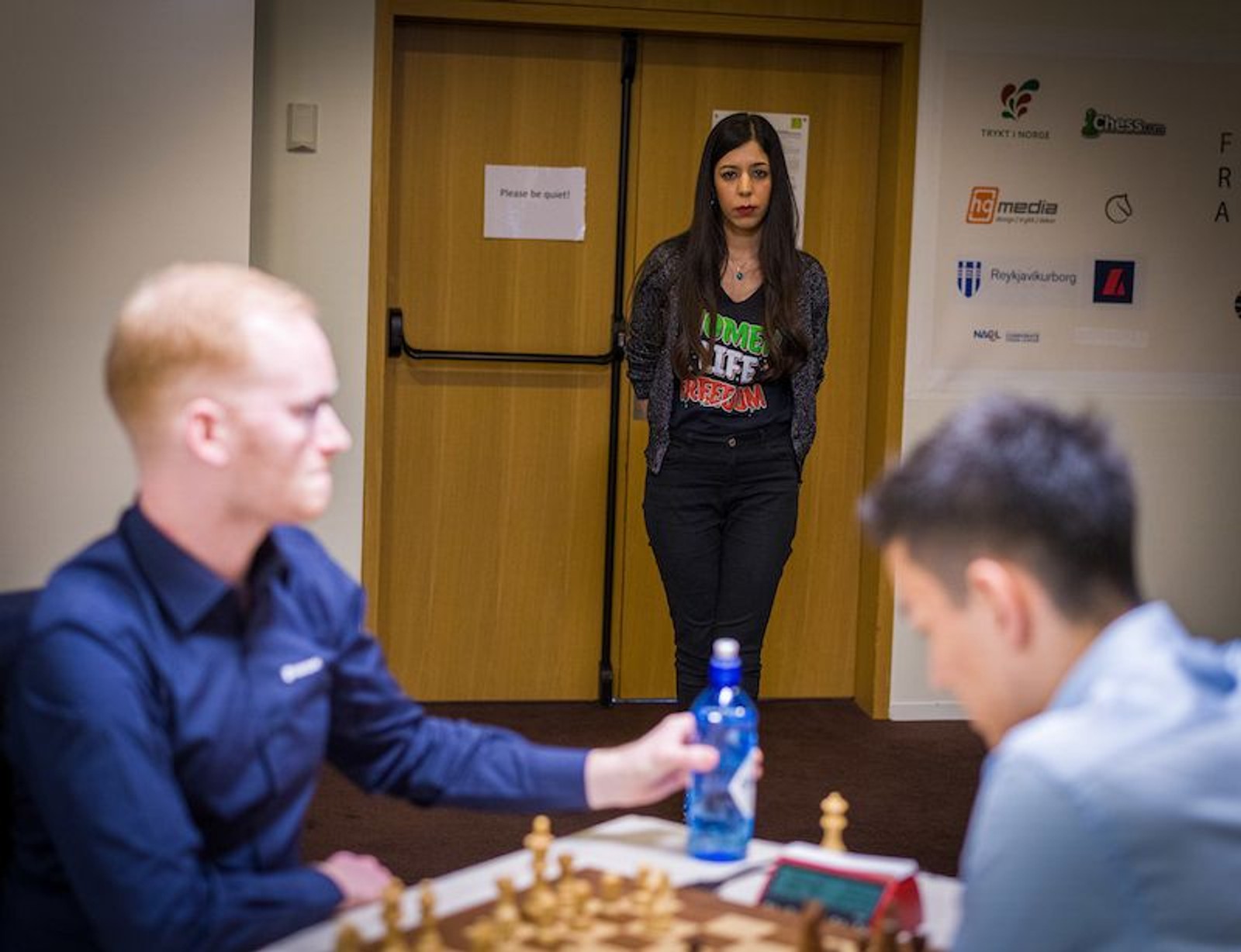 پیتر هاین نیلسن، مربی مگنوس کارلسن که در پیگیر ماجرای شهره بیات، است به NRK می گوید: به طور کلی، من احترام می گذارم که داوران باید بی طرف باشند، اما فکر نمی کنم این نشانه مشکل ساز باشد. او از ایران فرار کرده است و این (تی شرت) یک واکنش طبیعی است. او از دنیای شطرنج می خواهد که تصمیم بگیرند در کدام سمت بایستند.»