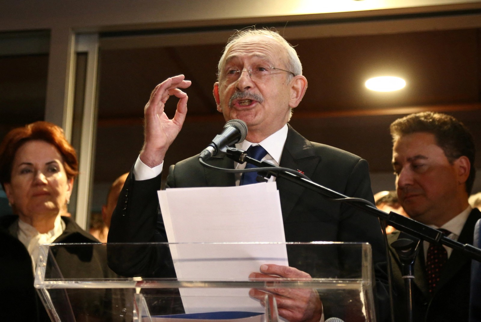 رهبران پنج تشکل دیگر ائتلاف مخالف اردوغان، از جمله آقای قلیچدار اوغلو در زمان اعلام این خبر در کنار او ایستاده بودند.