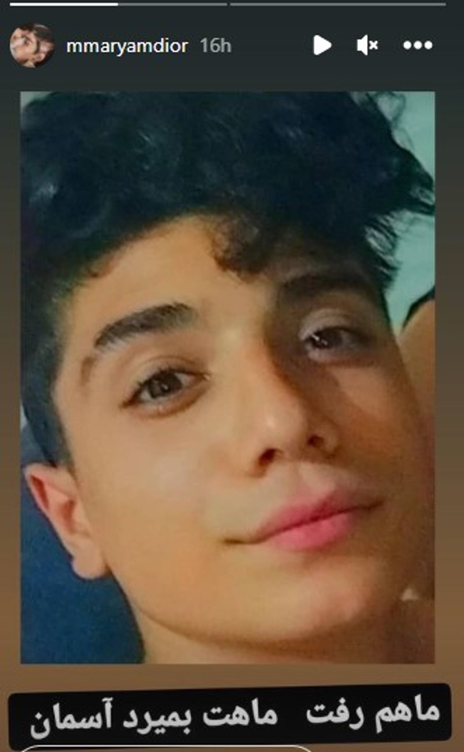 شامگاه جمعه مادر ابوالفضل در استوری اینستاگرام خود با انتشار عکسی، از مرگ فرزند نوجوانش خبر داد.