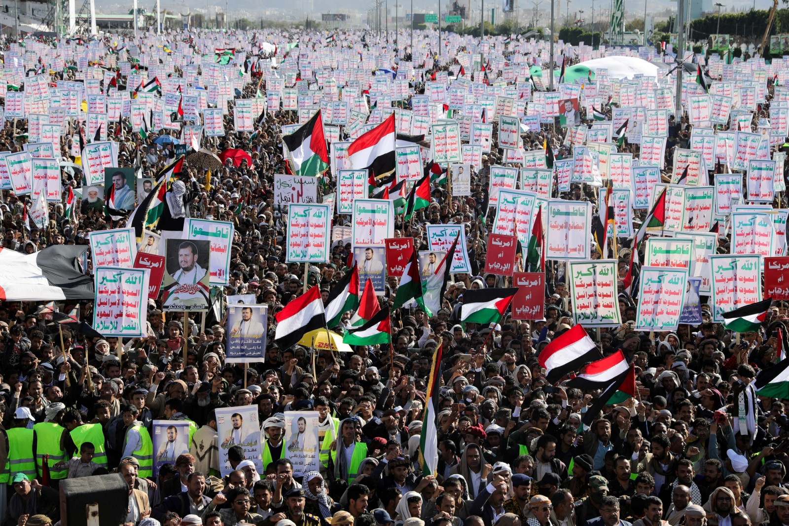 همزمان روز جمعه تظاهراتی در صنعا در حمایت از فلسطینیان و علیه آمریکا و اسرائیل برگزار شد.