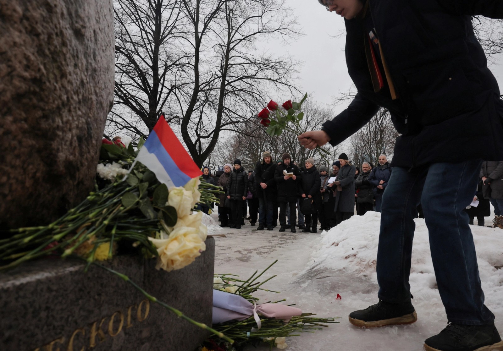 روز جمعه شماری از مردم روسیه به یاد الکسی ناوالنی کنار بنای یادبود قربانیان سرکوب سیاسی در سنپترزبورگ تجمع کردند.