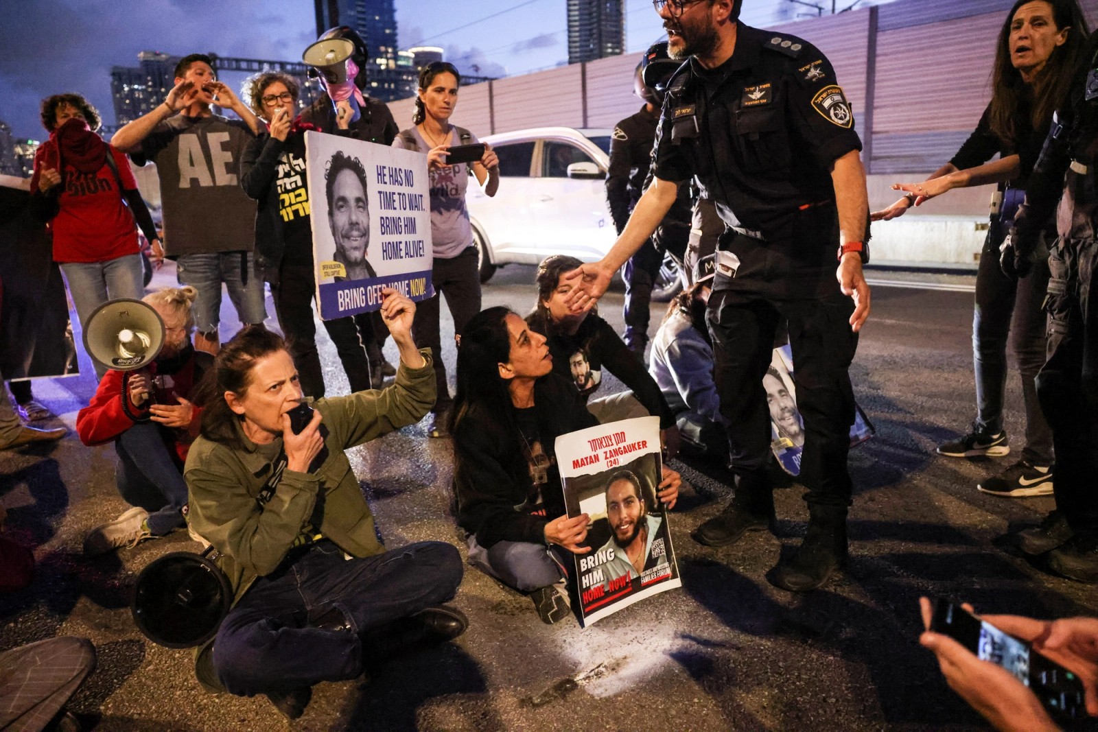 در میان تظاهرکنندگان، خانوادههای گروگانهای در بند حماس نیز دیده میشوند.