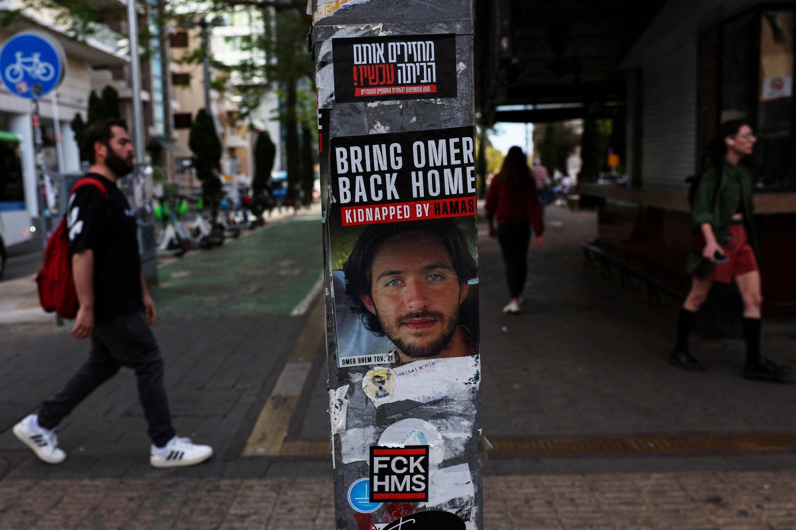 تصویر یکی از گروگان‌های در بند حماس در خیابانی در تل‌آویو، ۱۸ اردیبهشت