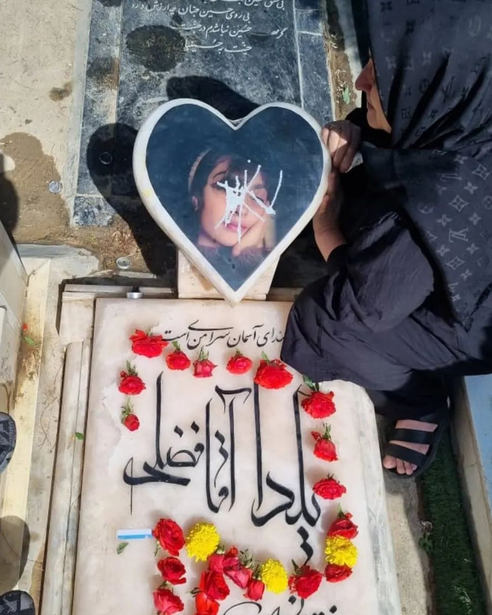 در یک نمونه، مهرداد آقافضلی، پدر یلدا آقافضلی، معترضی که پس از آزادی از بازداشت درگذشت، در روز ۱۲ مرداد ۱۴۰۲ با انتشار پستی در اینستاگرام خود خبر داد چهره دخترش را روی سنگ مزار او مخدوش کرده‌اند.