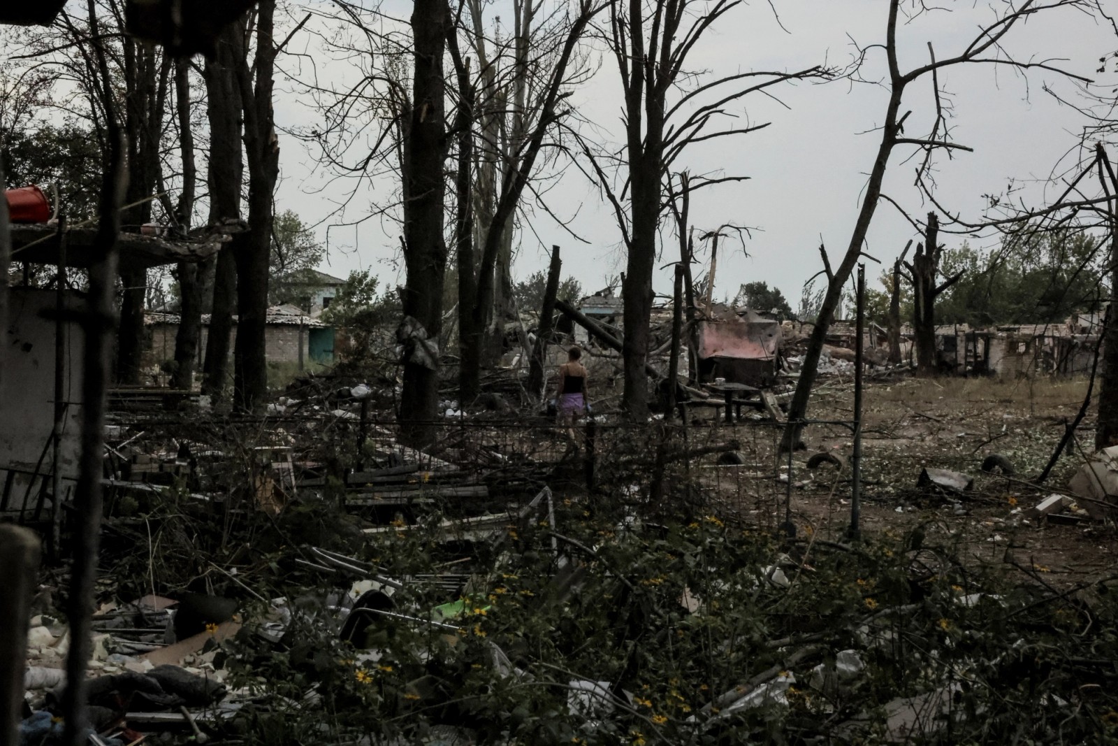 ویرانه‌های به‌جا مانده از حملات روسیه به شهر چاسیو یار، منطقه دونتسک اوکراین، ۱۲ شهریور
