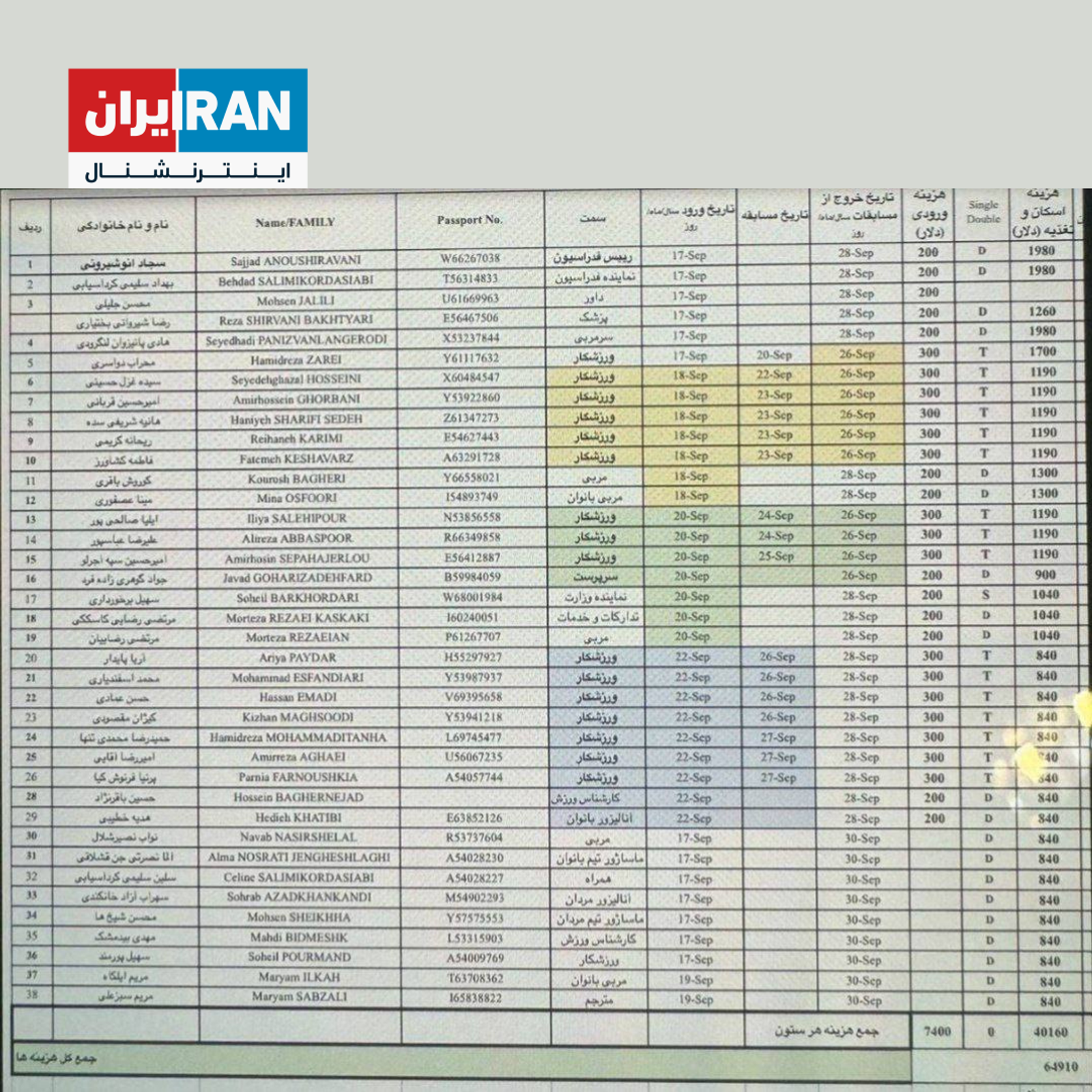 نام همسر بهداد سلیمی، قهرمان پیشین المپیک و نایبرئیس کنونی فدراسیون وزنهبرداری، بهعنوان ماساژور تیم زنان، درحالی در لیست مورد اشاره قرار گرفته که تاریخ ورود او به اسپانیا پنج روز پیش از اعزام ورزشکاران زن و تاریخ بازگشت او هم سه روز پس از پایان مسابقات زنان است.