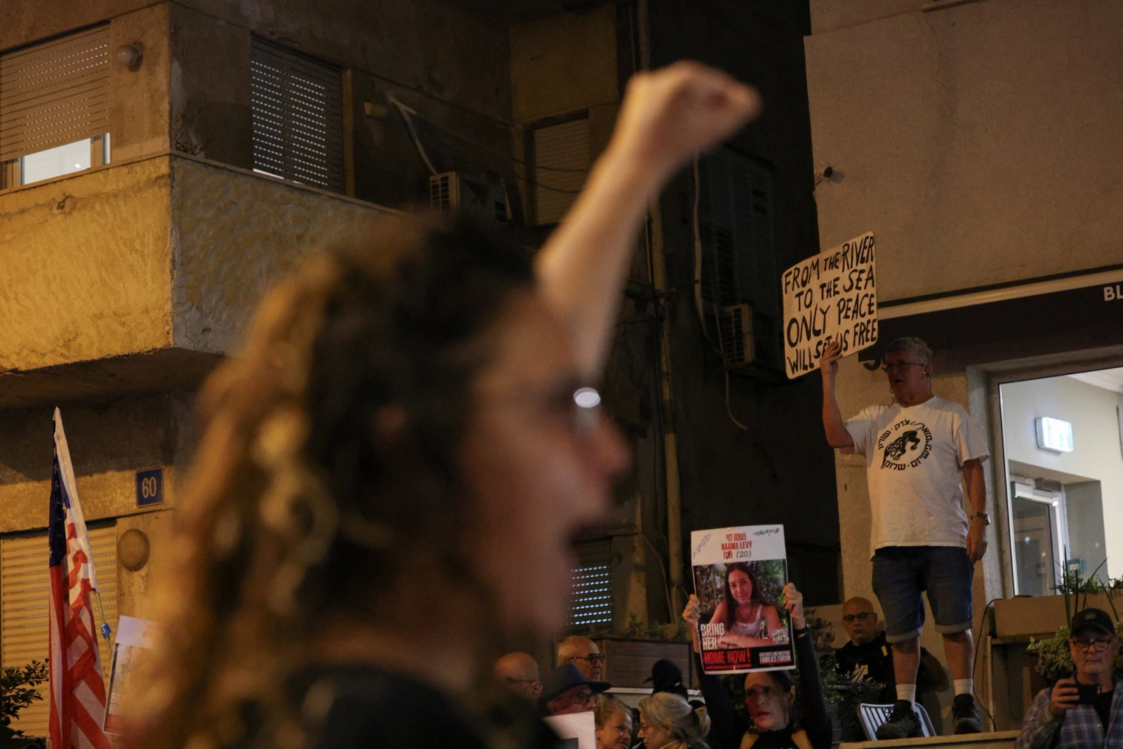 جمعی از شهروندان اسرائیلی در خارج از هتل محل اقامت آنتونی بلینکن وزیر خارجه ایالات متحده در تلآویو تجمع کردند.