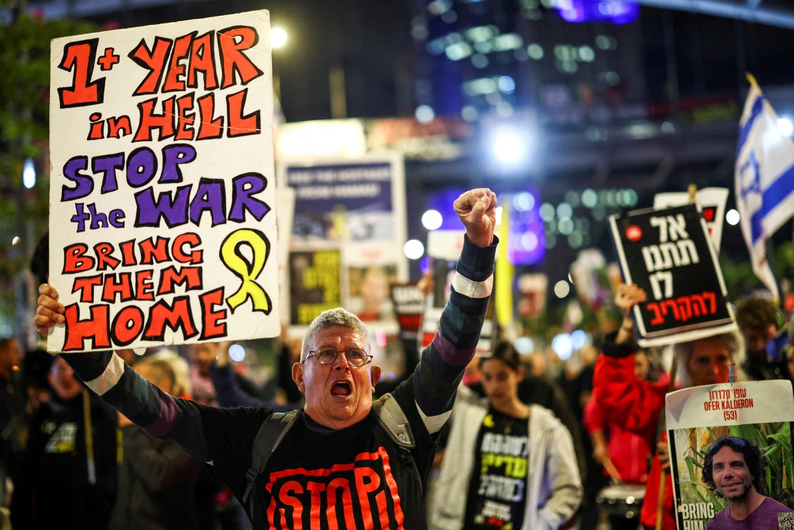 بر اساس تصاویر منتشر شده در رسانه‌ها، شامگاه سه‌شنبه اعتراضات خانواده‌های گروگان‌های اسرائیلی در تل‌آویو همچنان ادامه یافت.