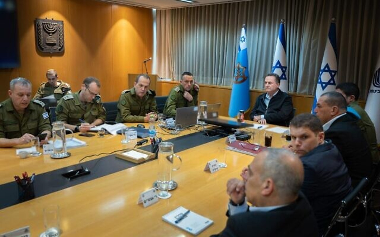 در این جلسه هرتزی هالوی، رییس ستاد کل ارتش اسرائیل و روسای اداره‌های عملیات، اطلاعات، استراتژی و شمار دیگری از مقام‌های وزارت دفاع حضور دارند.
