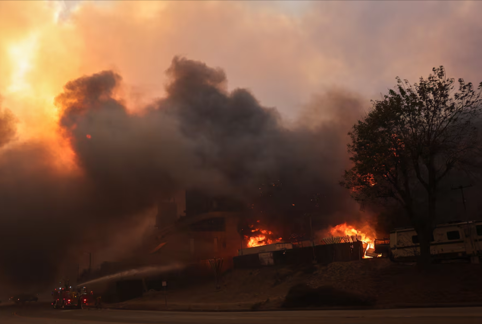 در شهر سانتا مونیکا، از ساکنان حاشیه شمالی شهر خواسته شد خانههای خود را تخلیه کنند. شاهدانی از همین منطقه به رویترز گرفتند تعدادی از خانهها در این منطقه سوختهاند و شعلههای آتش اتومبیلها را هم دربرگرفته است و آتش در حال پیشروی به سمت اقیانوس است.