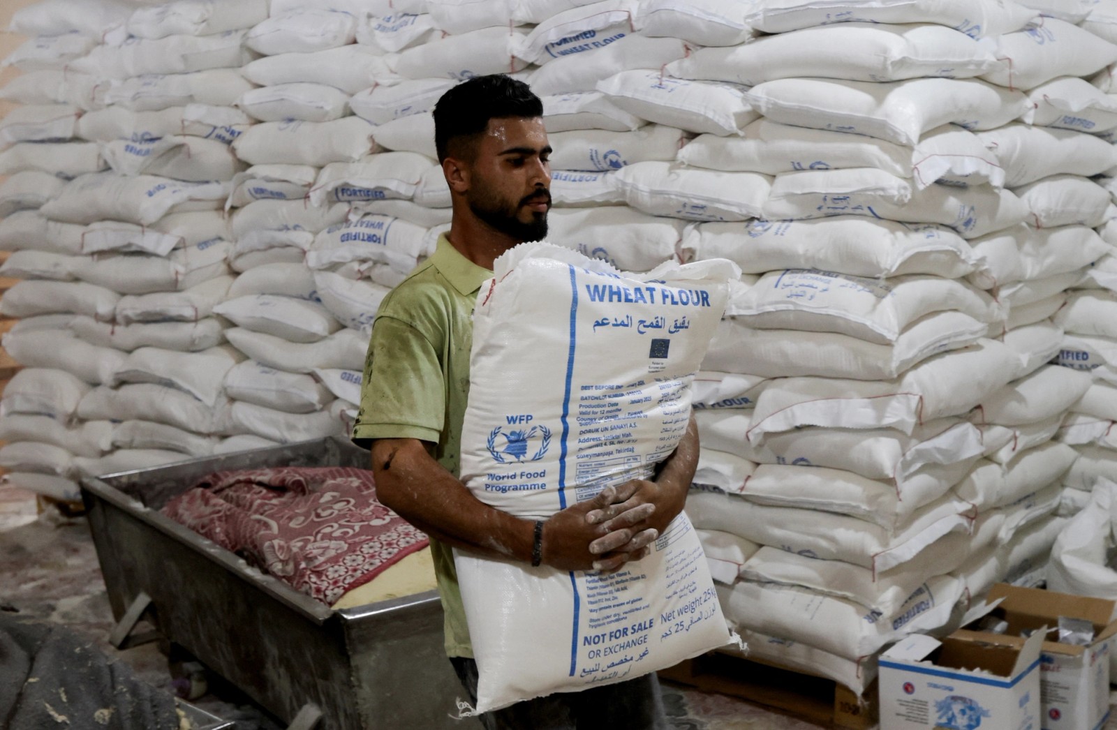 ورود محمولههای آرد برنامه جهانی غذا به شهر دیر البلح در مرکز نوار غزه، اول خرداد