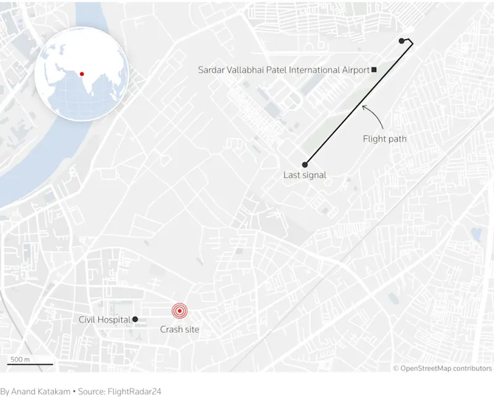 تلویزیون‌های هند گزارش دادند لحظاتی بعد از برخاستن هواپیما، تصاویر ویدیویی نشان داده‌اند که هواپیما با عبور از منطقه‌ای مسکونی، ناپدید شده و سپس توده‌ای عظیم از دود و آتش از پشت ساختمان‌ها به هوا برخاسته است.