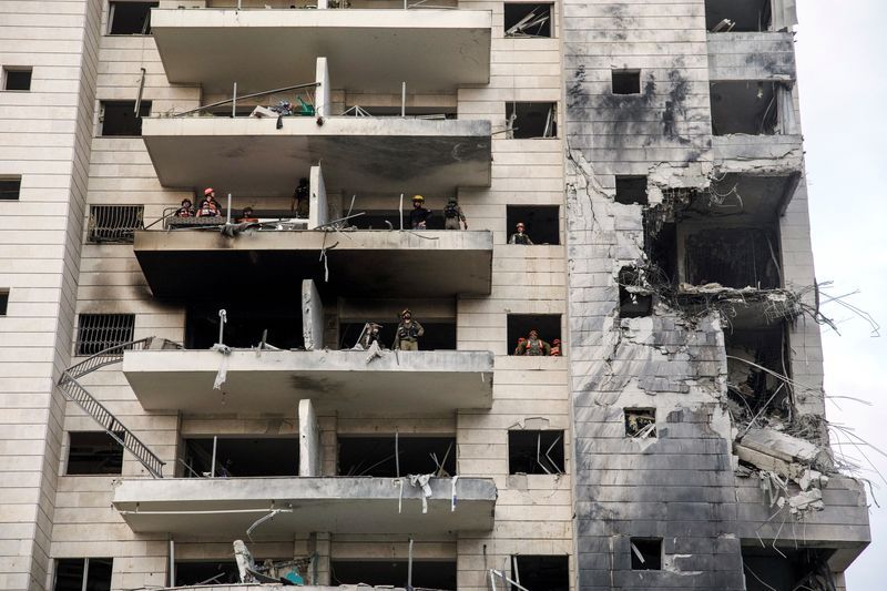 در همین حال، تصاویر منتشرشده از شهر پتخ تیکوا در شمال تل‌آویو نشان می‌دهد که بر اثر اصابت موشک، بخشی از یک ساختمان مسکونی فرو ریخته و نیروهای امداد و نجات در محل مشغول عملیات هستند.