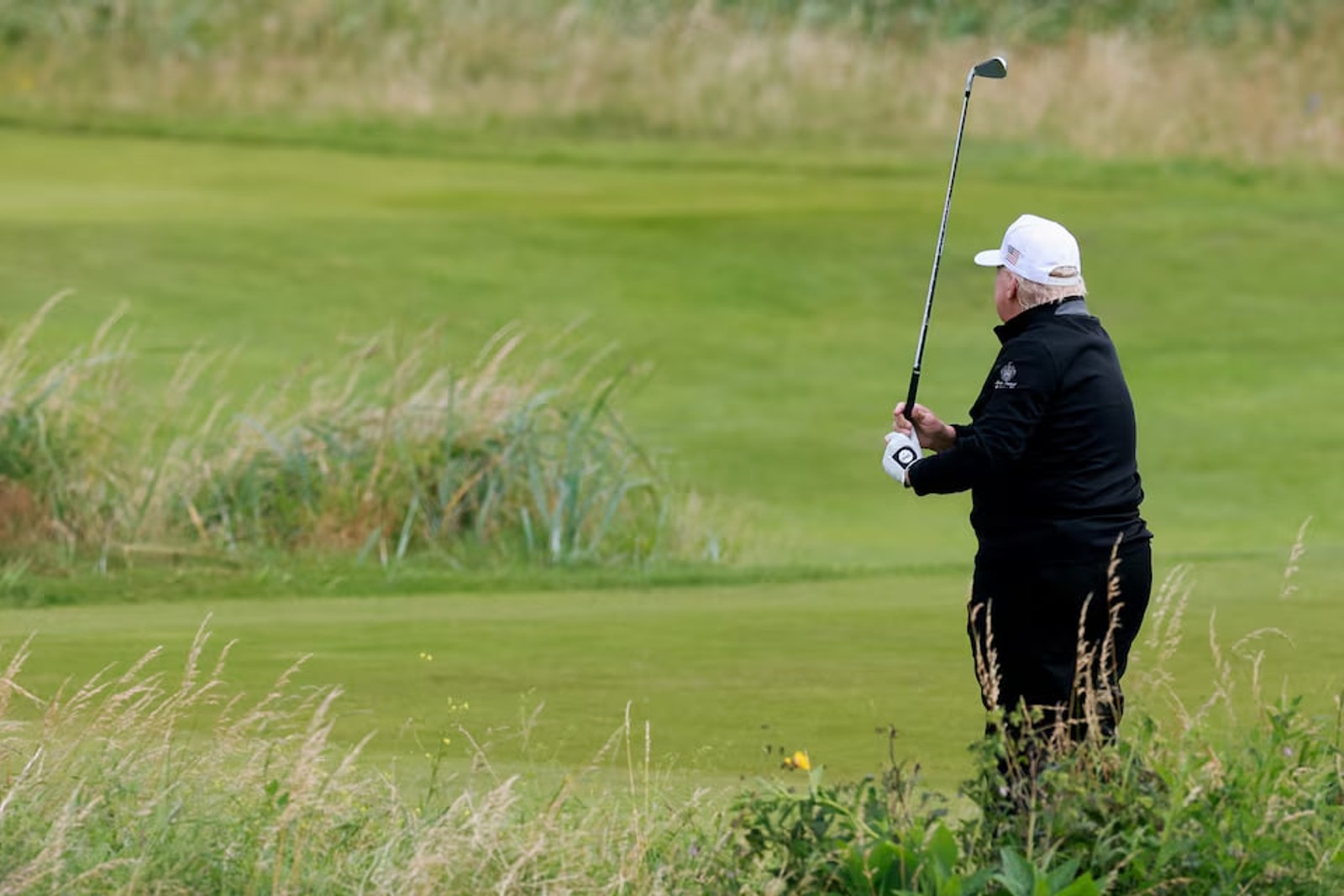 رییس‌جمهوری آمریکا هنگام ورود به خبرنگاران گفت قصد دارد از دو زمین گلف خود در اسکاتلند دیدن کند؛ یکی در ترنبری در سواحل غربی که شنبه ۴ مرداد در آن بازی کرد و دیگری در نزدیکی ابردین.