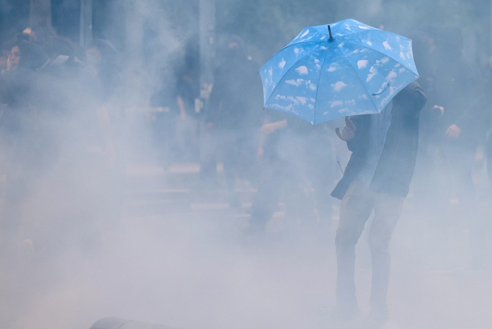 آنها با بمبهای دودزا، بطری و سنگ به سوی پلیس حمله کردند و پلیس نیز با اسپری فلفل واکنش نشان داد.