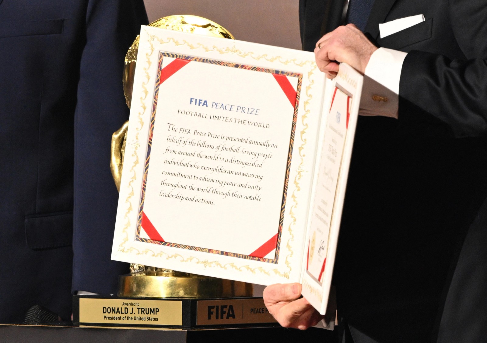 دونالد ترامپ، رییسجمهوری ایالات متحده آمریکا، نخستین جایزه صلح فیفا را در مراسم قرعهکشی جام جهانی ۲۰۲۶ فوتبال دریافت کرد.