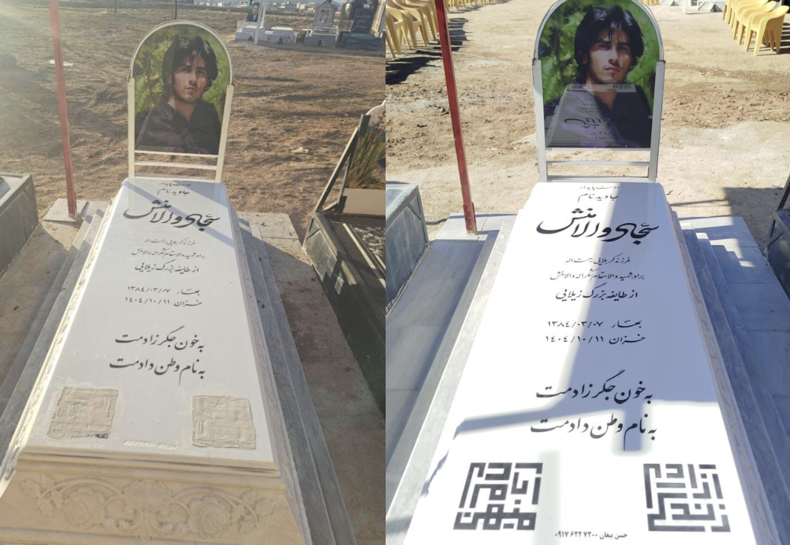 با وجود امتناع خانواده از اعمال این تغییر، ماموران روز گذشته این عبارات را با چسب و سنگ گچ پوشاندهاند.