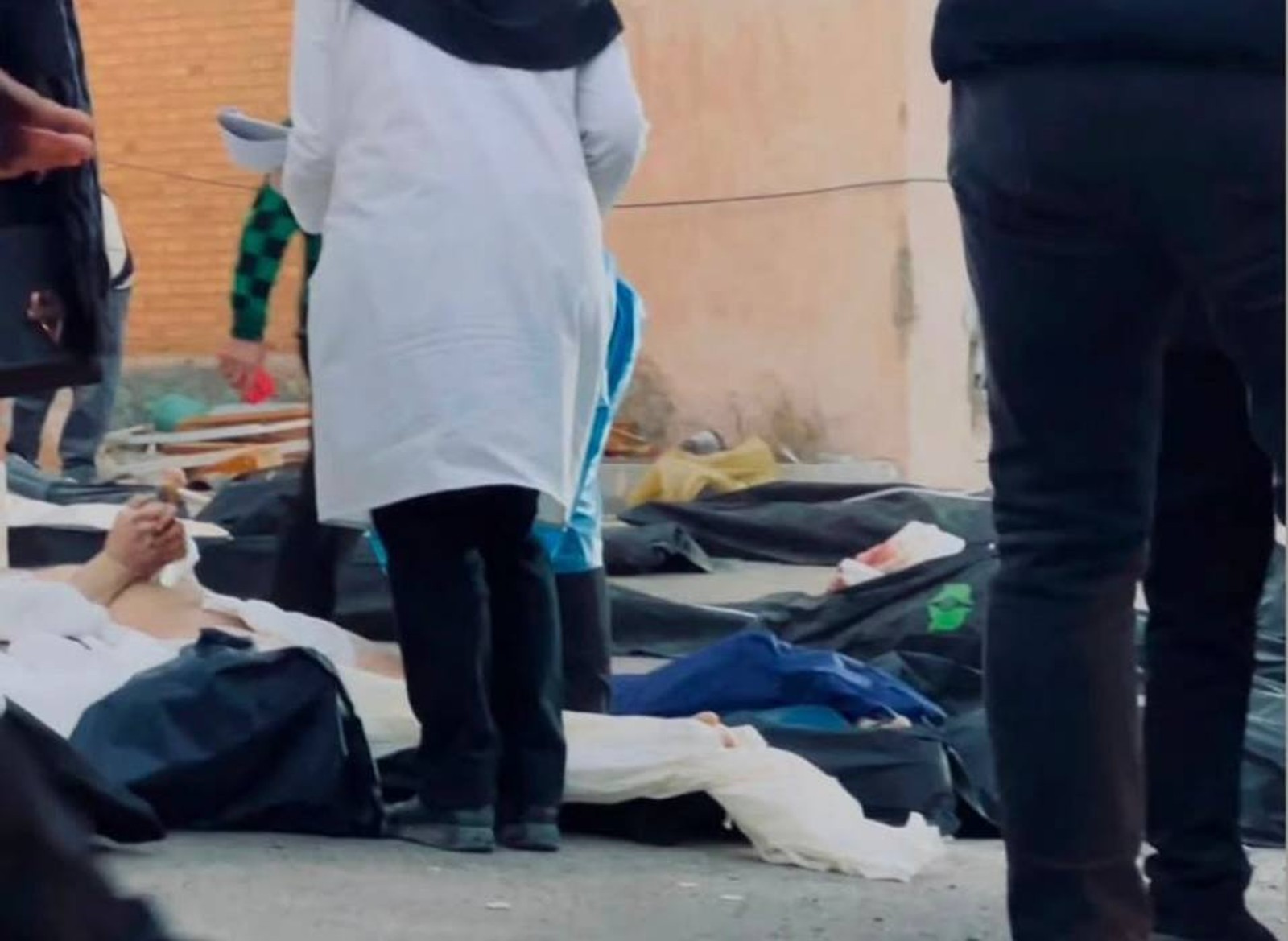 پیکرها زیر نظر ماموران امنیتی با عجله تمام و در حالی‌که بسیاری هنوز لباس به تن داشتند، در کاور‌های پلاستیکی ویژه فوت‌شدگان گذاشته و به تدریج به سردخانه منتقل می‌‌شدند.