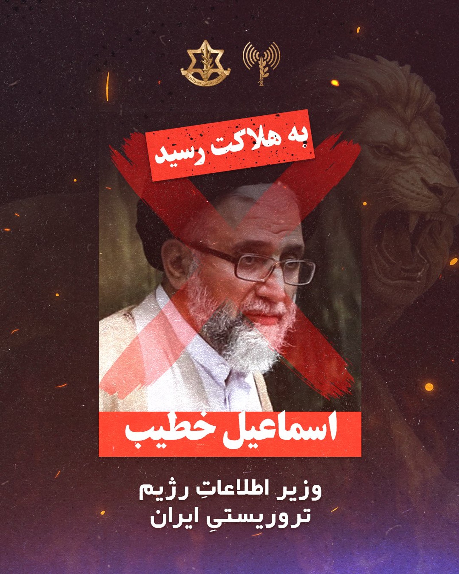 ارتش اسرائیل در بیانیهای با اشاره به کشته شدن اسماعیل خطیب در عملیات اخیر این کشور در تهران، وزارت اطلاعات جمهوری اسلامی را «یکی از سازوکارهای اصلی سرکوب و ترور» در ایران معرفی کرد.