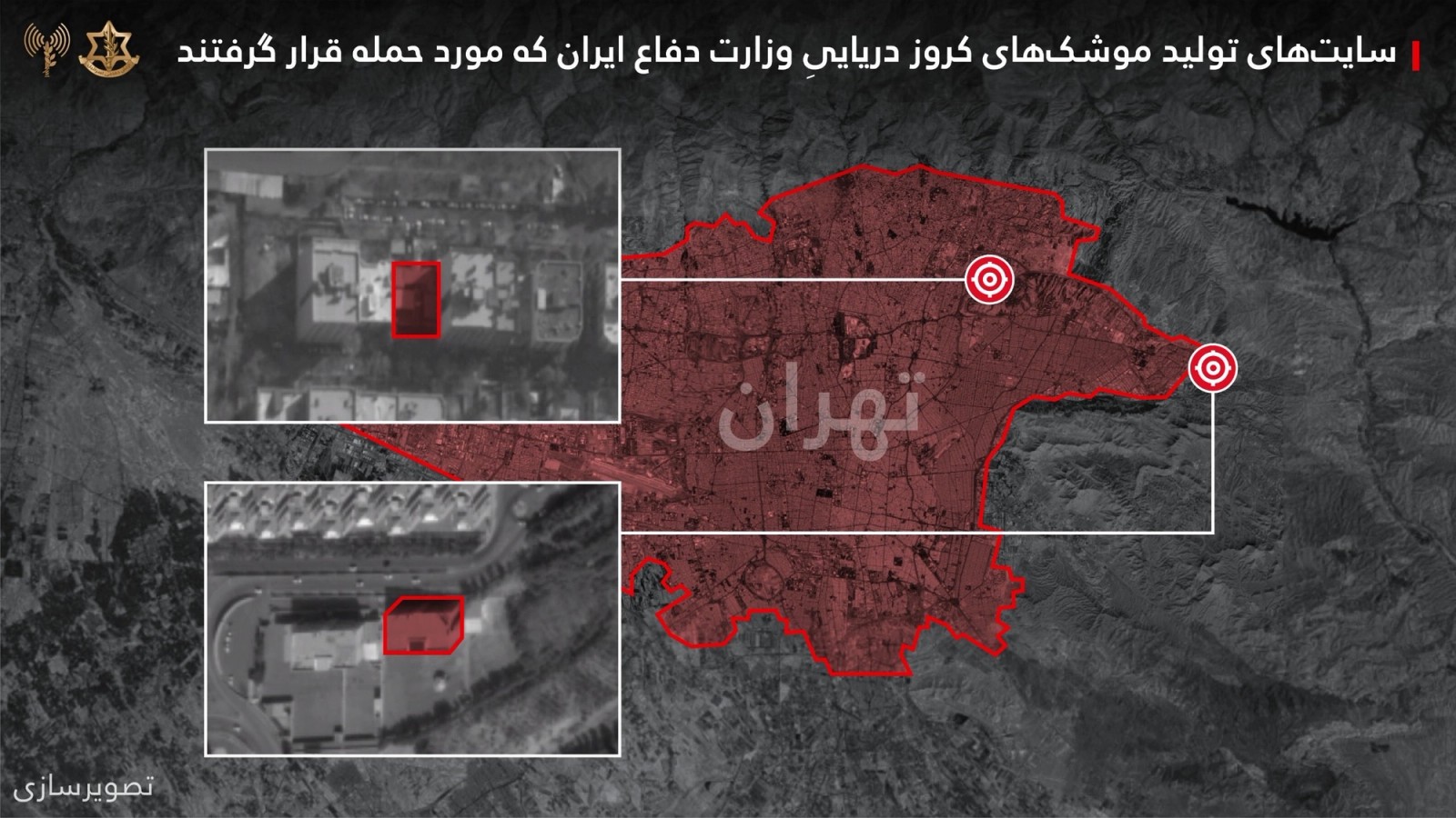 ارتش اسرائیل در بیانیهای اعلام کرد دو سایت تولید موشکهای کروز دریایی دوربرد را در «قلب تهران» هدف قرار داده است.